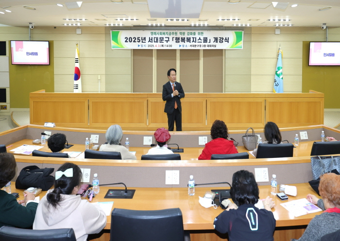 서대문구(구청장 이성헌)는 최근 명예사회복지공무원을 위한 맞춤형 교육과정인 ‘행복복지스쿨’을 개강했다고 10일 밝혔다. 주 1회씩 5주 과정으로 ▲사회적 고립 및 복지위기가구 발굴 이해 ▲핵심만 콕! 쉽게 이해하는 사회복지제도 ▲서대문구 인생케어 정책, 그것이 알고싶다 ▲마음의 온도를 더하다, 나와 이웃에 대한 이해 ▲복지어벤저스, ‘명사복’이 간다-사례공유를 통한 소통 네트워크 구축 등의 내용을 다룬다. 참여자에게는 활동 기록지와 강의 노트를 담은 핸드북을 제공하며 교육과정의 80% 이상 수강하면 수료증을 수여한다. 개강식을 겸한 교육 첫날에는 통장, 반장, 동 지역사회보장협의체 위원, 새마을부녀회원, 일반 주민 등 명예사회복지공무원 80여 명이 참석했다. 이들은 ‘구청장과 함께 하는 퀴즈’에 참..