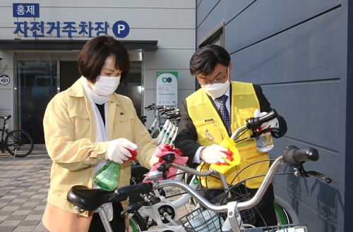 서대문구의회 박경희 의장은 홍제 자전거주차장을 찾아 주민들 손이 많이 닿는 곳곳을 직접 방역소독했다고 밝혔다. 최근 코로나19 확진자 수가 무섭게 증가, 3차 대유행이 시작되면서 수도권 일대는 2단계 거리두기를 시행 중이다. 이에 지역 감염 확산에 대해 주민들의 불안이 켜지고 있는 만큼, 공공이용시설이나 놀이터,운동기구, 벤치 등 방역에 다중이용구조물을 중심으로 소독에 나선 것이다. 박경희 의장은 이날 홍제 자전거주차장 외에도 하하호호 마을활력소 시설과 신기한 놀이터 등도 직접 방역했다.